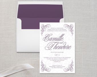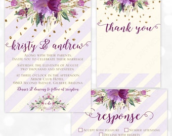 Purple Floral Wedding Invitation Suite Wedding Invitation Printable Wedding Invitation Suite 3 Piece Wedding Set Printable Invite PDF (#2)