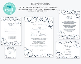 Wedding Invitation Suite Templates, Swirls Wedding Invitation, Printable Wedding Invitation, DIY Suite Templates, Full Editable Swirls Color