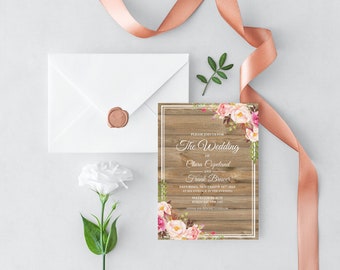 Watercolor Floral Wedding Invitation Set, Rustic Wedding Invitation Suite, Printable Wedding Invitation, Boho Wedding Invitation, WTRFL