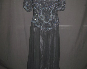Vintage Slate Gray and Beaded Gown LV133