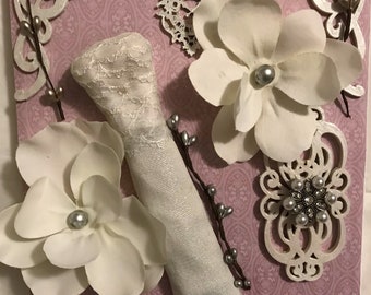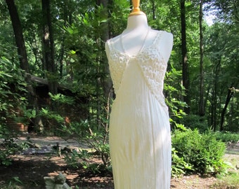 Beautiful Silk Ivory Gown or Wedding Gown trimmed heavily with Venice Laces