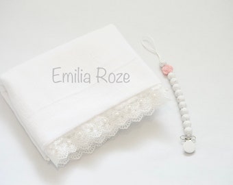 Baby Newborn Blanket, Personalised Cuddle Blanket, Swaddle Blanket, Pushchair Blanket - in fleece or flannel and hand embroidered name