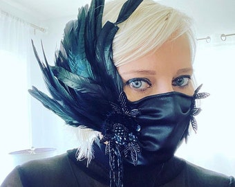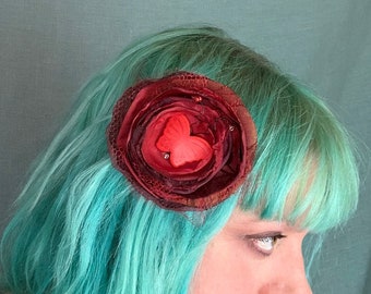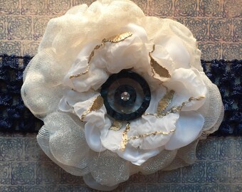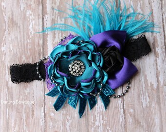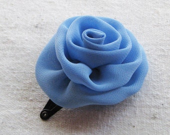 CLEARANCE Rainbow Couture Feather Hair Clip- Sky Blue Satin Flower Pearls- Birthday Girl- Cake Smash- Singed Flower- Hair Accessories