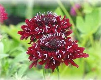 25+ The common name is Pincushion Flower because it resembles a pin cushion. It might have unusual names and have an interesting history, but that does not change the fact that it is a gorgeous flower and enhances any landscape where it grows. Propagated easily from Scabiosa seed, every garden should have a display of these lovely perennials. In the hotter climates, Scabiosa Pincushion would perform better with afternoon shade. The Pincushion Flower will self-sow, dropping its own flower seeds for next season's display. Sow Scabiosa seed indoors 10 weeks before the desired planting date. Sow the seeds and press the Scabiosa Flower seeds gently into the starter mix. Keep the seed moist until germination. Pincushion seeds can also be sown directly outdoors after danger of frost has passed, but they will be very late to bloom. Sow the flower seeds into well-draining soil that has been loosened and weeded. Sow the seeds in groups of 3 - 4 spaced 12 - 18 inches apart. Gently press the Scabiosa seed into the soil and keep it moist. Pincushion flower care includes deadheading the spent blooms to promote continual flowering. Do not over water, but rather let the red Pincushion Flower dry out in-between waterings. Over-fertilizing will result in few blooms, so do not fertilize unless the soil is very poor. Full sun to partial shade. Will grow 32 inches tall. Zones 3-8.
