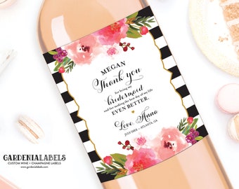 Bridesmaid Thank You Wine Label, Bridal Thank You Gift, Thank You for being my Bridesmaid Champagne label, Best Day Ever, Bridesmaid ask
