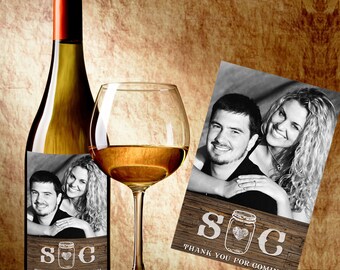 Wedding Wine Label - Wine Label with Photo - Photo Wine Bottle Labels - Rustic Wine Labels - Rustic Mason Jar Country Wine Labels with Photo