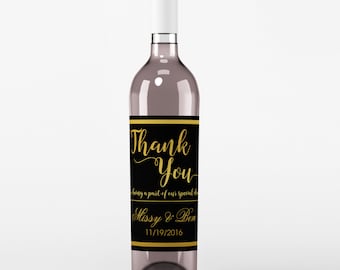 Wedding Wine Label - Custom Wine Label - Personalized Wine Label - Wedding Wine Bottle Label - Black and Gold - Thank You Wine Labels
