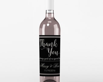 Wedding Wine Label - Custom Wine Label - Personalized Wine Label - Wedding Wine Bottle Label - Black and Sliver - Thank You Wine Labels