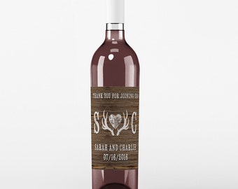 4 Wedding Wine Labels - Custom Wedding Wine Labels - Deer Antlers Wine Labels - Thank You - Rustic Wine labels - Country Wine Labels
