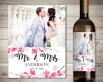 Photo Wedding Wine Label - Custom Wine Label - Personalized Wine Label - Wedding Wine Bottle Label - Spring Wedding _ Cherry Blossom Wedding