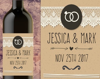 Wedding Wine Label - Personalized Wine Label - Custom Wine Label - Wedding Wine Bottle Label