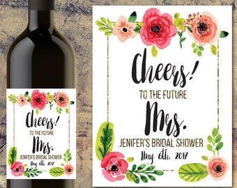 CUSTOM BRIDAL SHOWER Wine labels- Cheers, Celebrate, Bridal Shower Centerpiece-Bridal Shower Favors-Faux Gold Foil