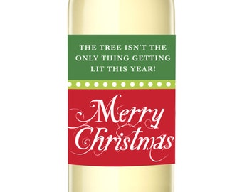 The Tree Isn't The Only Thing Getting Lit This Year Christmas Wine Labels - Unique Christmas Gift - WEATHERPROOF and REMOVABLE - Wine Label