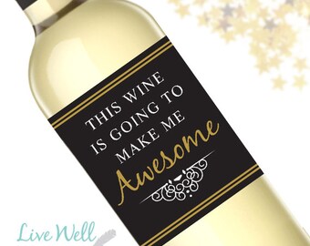 This Wine Is Going To Make Me Awesome - Funny Wine Label - Unique Gift - WEATHERPROOF and REMOVABLE - Wine Bottle Labels