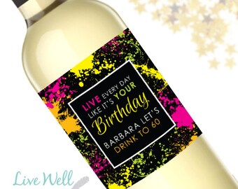 Custom Happy Birthday Wine Labels - Personalized Birthday Gift - WEATHERPROOF and REMOVABLE - Wine Bottle Labels