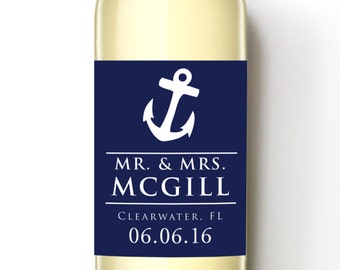 Anchor Together Custom Wine Labels - Nautical Theme Wedding Favor - WEATHERPROOF and REMOVABLE labels