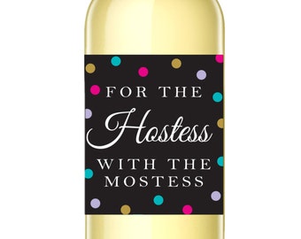 Hostess with the Mostess Wine Label - Thank You Hostess Gift - WEATHERPROOF and REMOVABLE - Wine Bottle Labels