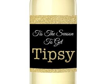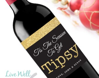 Tipsy Custom Holiday Christmas Wine Labels - Unique Christmas Gift - WEATHERPROOF and REMOVABLE - Wine Bottle Labels