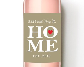 Welcome Home Custom Wine Labels - House Warming New Home Gift - WEATHERPROOF and REMOVABLE - Wine Bottle Labels
