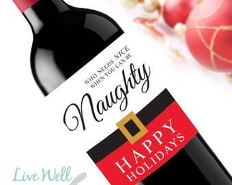 Who Needs Nice When You Can Be Naughty - Christmas Wine Labels - Unique Christmas Gift - WEATHERPROOF and REMOVABLE - Wine Bottle Labels