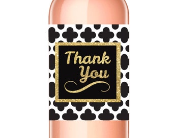 Thank You Wine Label - Black and Gold Sparkle - Thank You Gift - WEATHERPROOF and REMOVABLE - Wine Bottle Labels