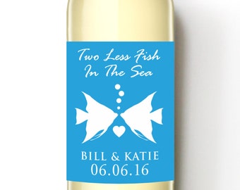 Two Less Fish in the Sea Custom Wine Labels - Fish Wedding - Beach Theme Wedding Favor - WEATHERPROOF and REMOVABLE - Wine Bottle Labels