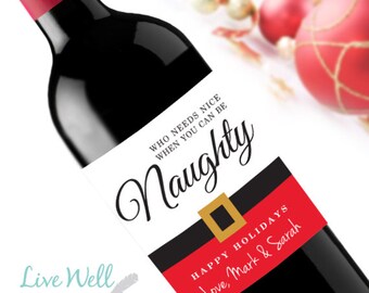 Naughty Custom Holiday Christmas Wine Labels - Unique Christmas Gift - WEATHERPROOF and REMOVABLE - Wine Bottle Labels