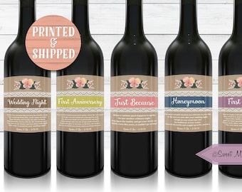 Rustic Wine Labels Wedding-1st Milestone-PRINTED-Custom w/ Couples Name-Date-You Choose-Personalized-Wine Basket Gift-Bridal Shower