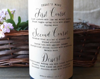 Wedding Menu Wine Labels - Wedding Menu Wine Bottle Labels - Wedding Menu - Pack of 4 Labels