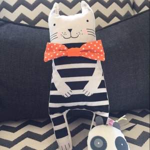 Materials: cotton fabric, zipper, leather cord, wool felt pom pom, padding fabric