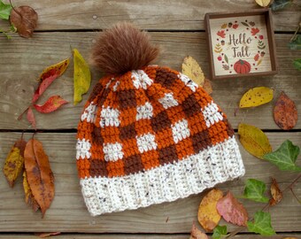 Boys hat tan brown baby hat for boys toddler fabric baby hat gingham checks hat plaid hat - Little Rascal