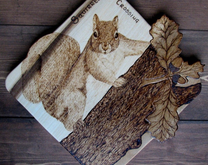Pyrography Original Art Squirrel Crossing sign
