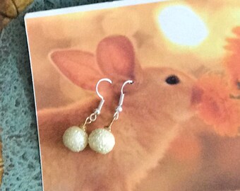 Little White Snowball Dangle Earrings