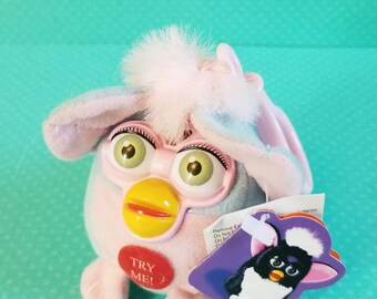 Vintage 90s Working Tiger Electronics Furby Talking Keychain Backpack Clip With Tags Pink Blue