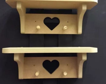 2 x shabby chic love heart peg shelf shelves 40cms each ready for painting new