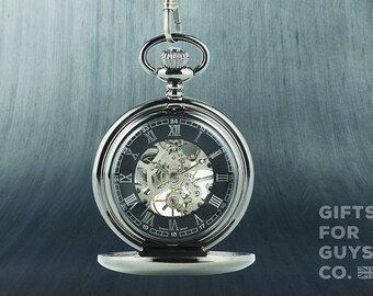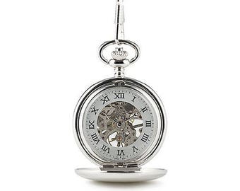 Personalised Silver Mechanical Pocket Watch, Wedding Keepsake Gift, Father, Groom, Best Man, Christmas Gift