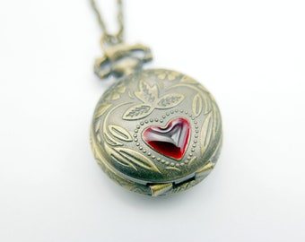 Red heart Pocket watch Necklace