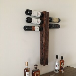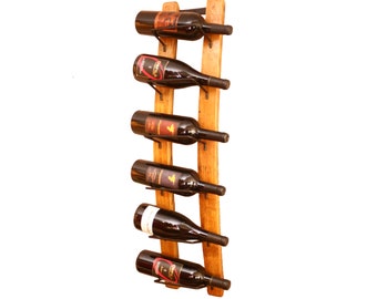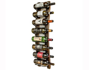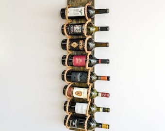 Bring your wall to life with this finely hand crafted Rustic Wall Wine Rack. This vertical style wine rack is designed to resemble an old barn beam. Elegant yet restrained, the solid wood construction features hand distressing and our signature dark 'burned barn' stain. The wood grain and color is reflected beautifully in this piece.
