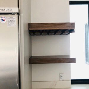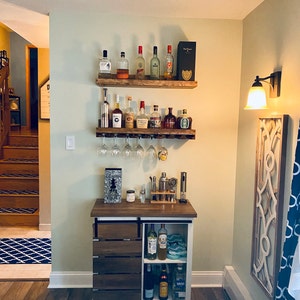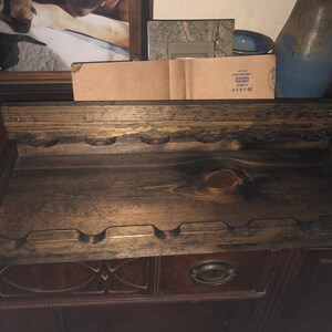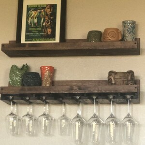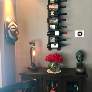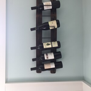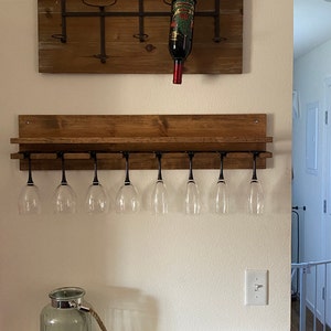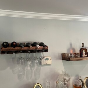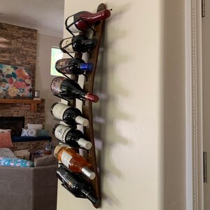 "Such a nice way to display your wine. Gorgeous color and markings on the wood. The seller delivered it to my home in person 1 day after purchasing and there were detailed mounting instructions included. Really well crafted and really nice people. Thank you!"