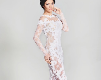 Long Sleeve Wedding dress - Lace Wedding Dress - Illusion Wedding Dress - 2018 Wedding Dress - Beach Wedding Dress - Boho Wedding Dress