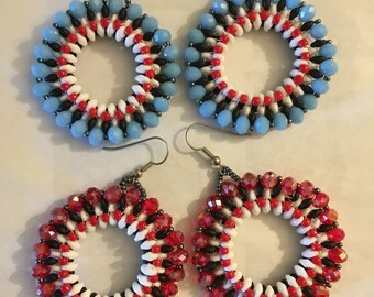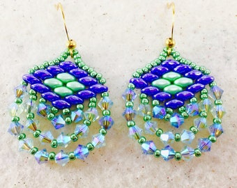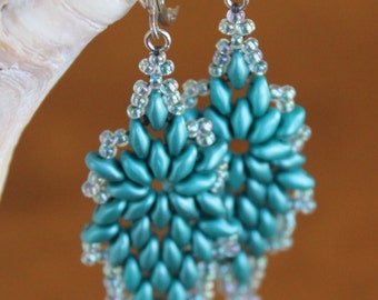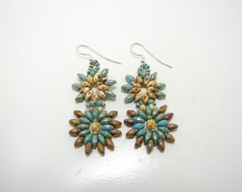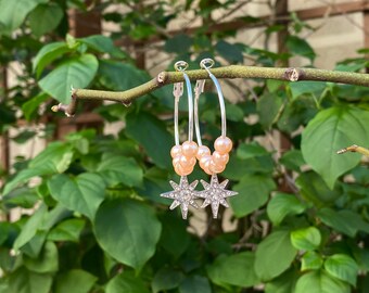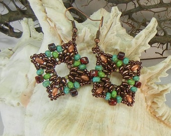 Pink starburst superduo star earrings, superduo earrings, super duo earrings, star earrings, twin bead earrings, pink earrings