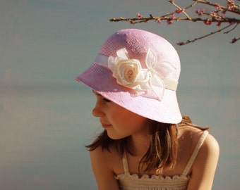 Toddler girl hat baby girl hat girls floral hat fabric hat for baby girls pink coral vintage inspired girls hat - Edith