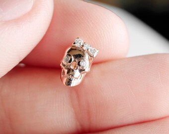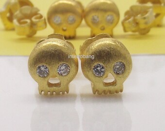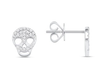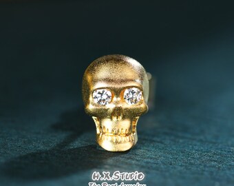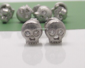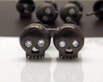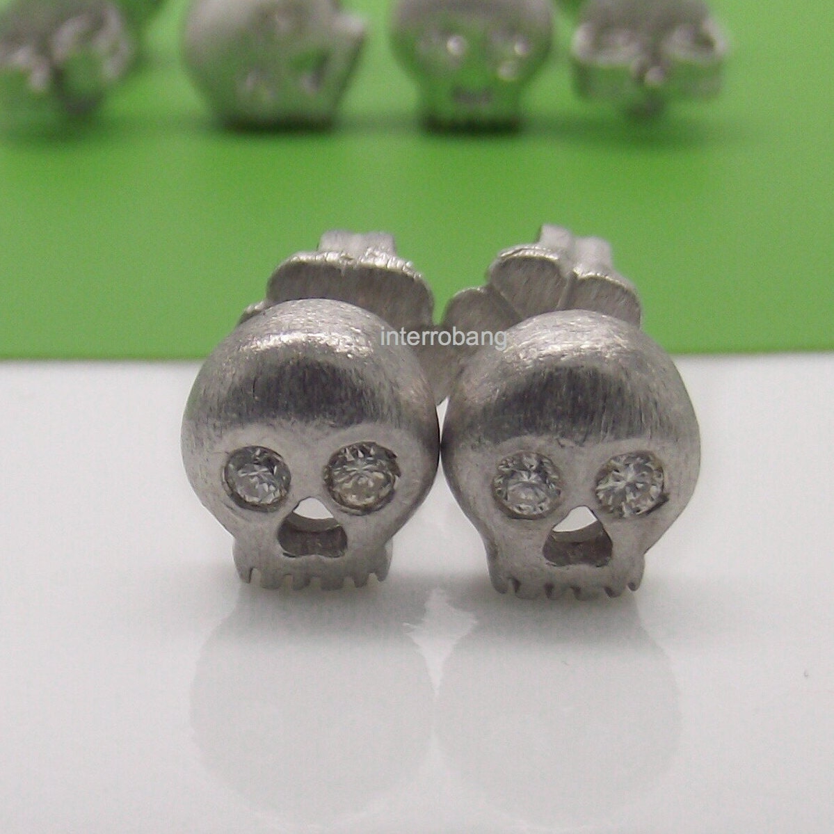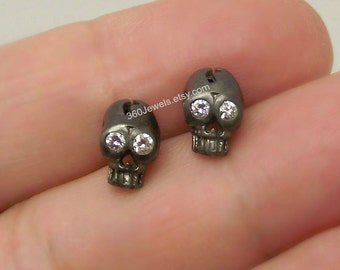 Men's stud earrings, antarctic diamond skull stud earrings, stud earrings, sterling silver earrings, small stud earrings, silver studs, 840E