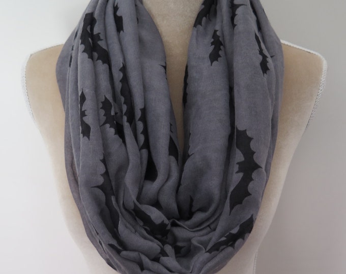 Grey Bat Print Infinity / Long Scarf Women's Halloween Party Gift