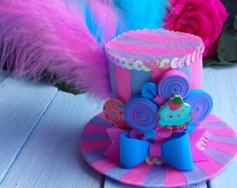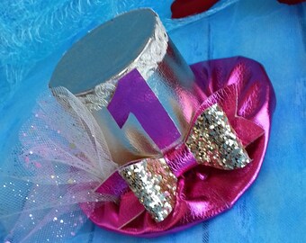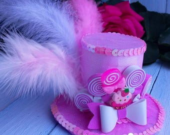 Pink Top Hat- Couture Fedora Girl First Birthday Costume- Photo Prop- Whimsical Feathers Flowers Bow Headband