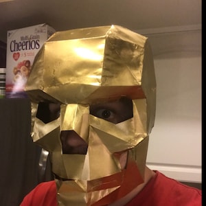 Excellent mask! Received lots of compliments while trick-or-treating. I used hot glue for the tabs on this one which was a bit difficult but not impossible. I also used a hand seamer for metal to fold the lines and it sped the process up considerably.