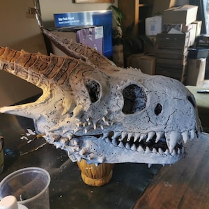 This wasn't as difficult to put together as I thought it would be. It was really quite easy and kind of relaxing. I just wish I had searched out a different cardboard for sharper edges ahead of time. I decorated mine with glow paint and a simple Dia De Los Muertos design for the festival. I also got the patterns for the humanoid masks so I will definitely be putting those together soon. Thanks for this easy to follow pattern!