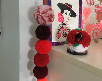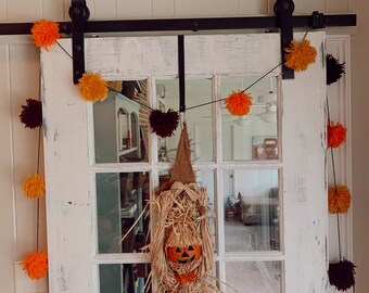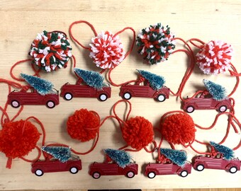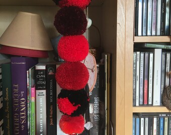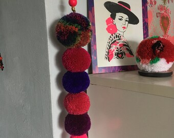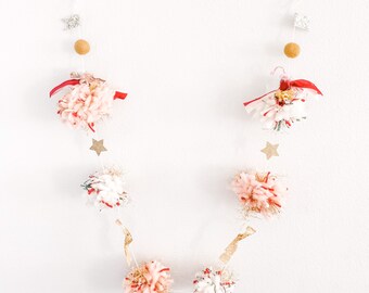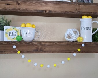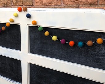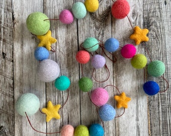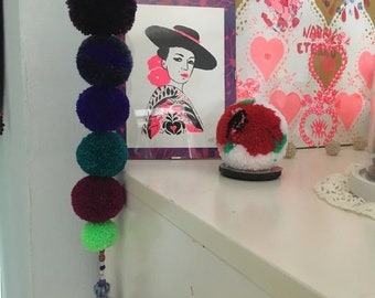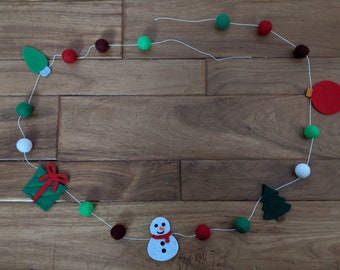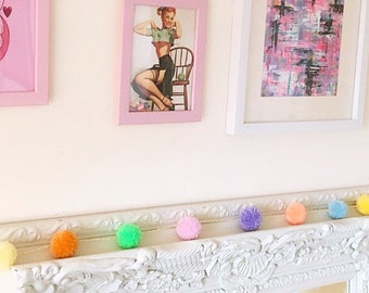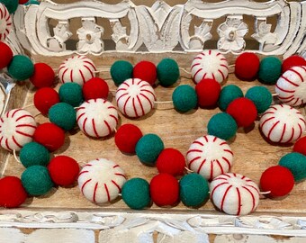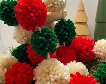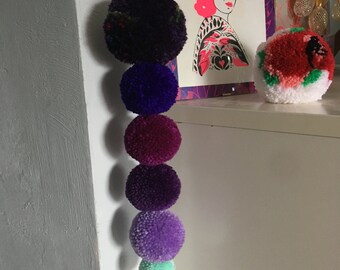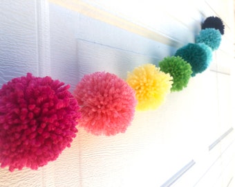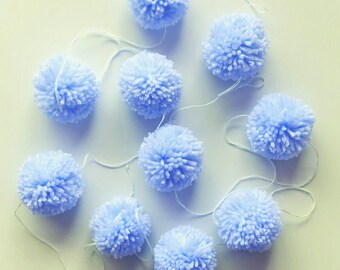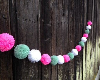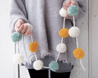 Pom Pom Garland - 10 Poms/8ft, Merino, handmade, White/Teal, Natural Wedding Baptism Christening Christmas Baby Shower Party Nursery Decor