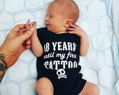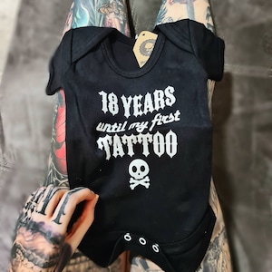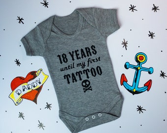 - 100% cotton unisex vest with 3 button fasteners printed with '18 years until my first tattoo' across chest.