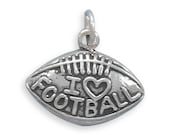 Football Charm, I Love Football Sterling Silver Football Charm, Sports Charm, Pigskin Charm, Bracelet Charm, Necklace Pendant, Jewelry